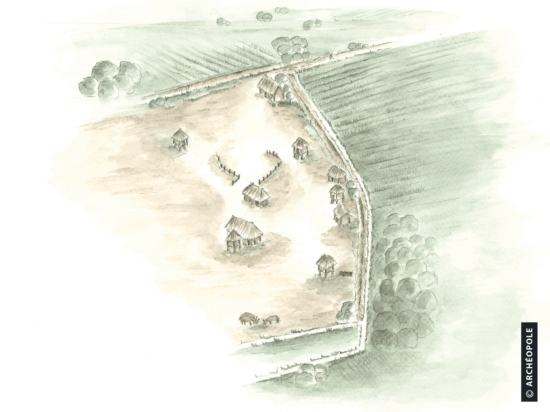 ButtonHypothèse de restitution de l'enclos de La Tène ancienne.