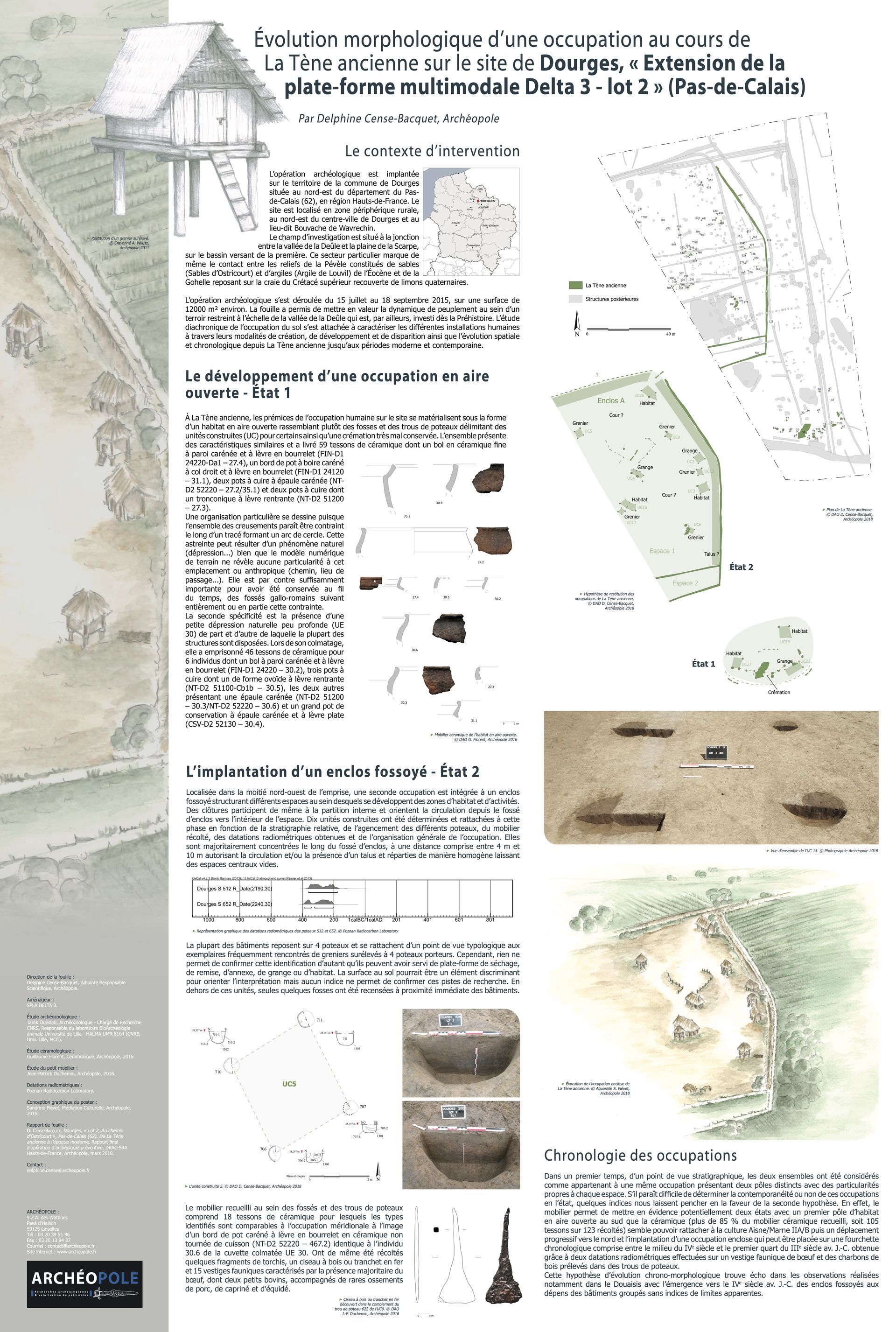 CENSE-BACQUET D., « Évolution morphologique d’une occupation au cours de La Tène ancienne sur le site de Dourges, « Extension de la plate-forme multimodale Delta 3 » (lot 2) », poster présenté au colloque HABATA, Approches multiscalaires des types et formes d’occupation du territoire dans l’Europe du nord-ouest de la fin du Néolithique à La Tène ancienne, Lille, Université de Lille, 3-4 octobre 2019.