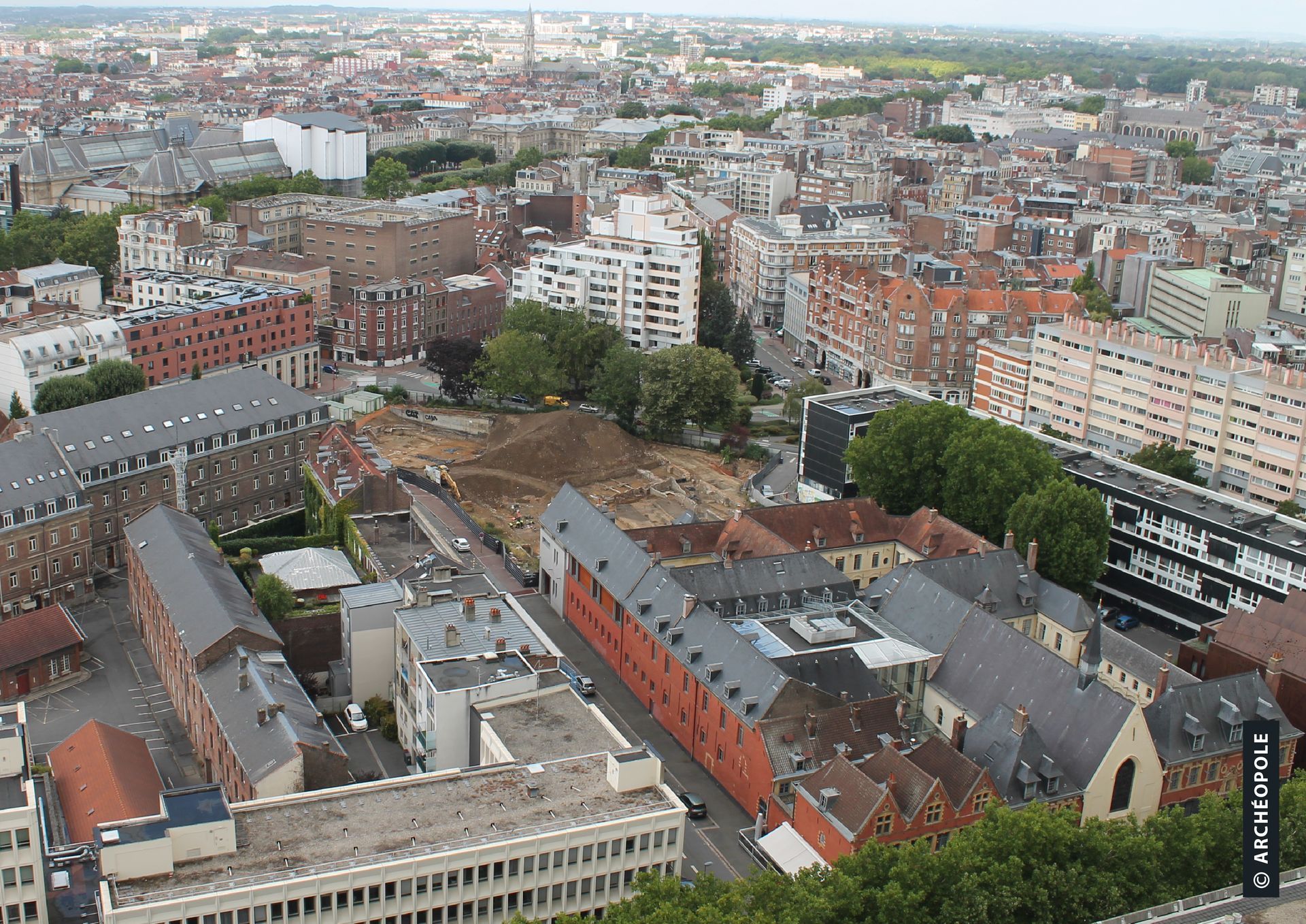 Vue du chantier depuis le beffroi de Lille. © Photographie S. Fiévet, Archéopole 2017