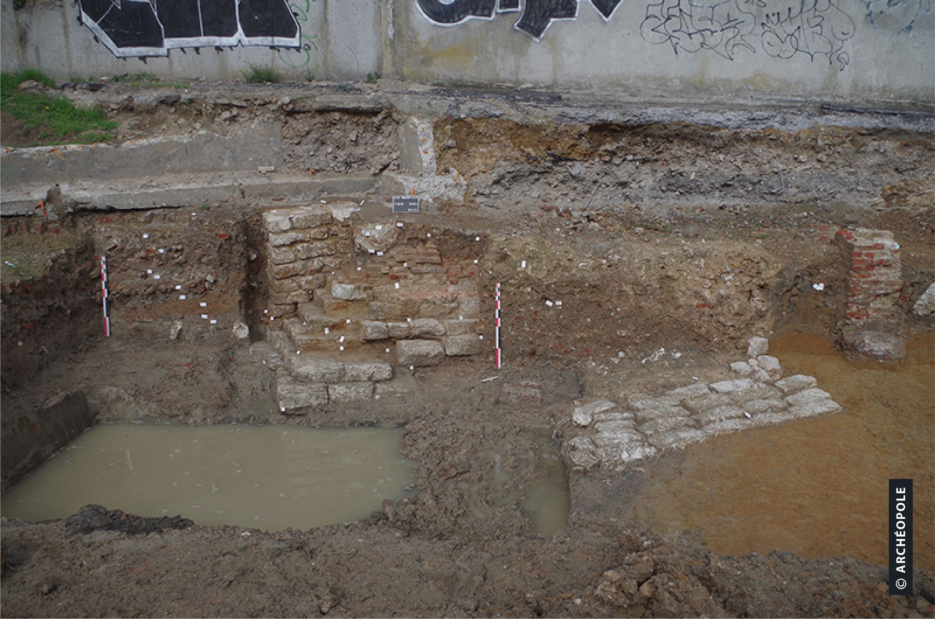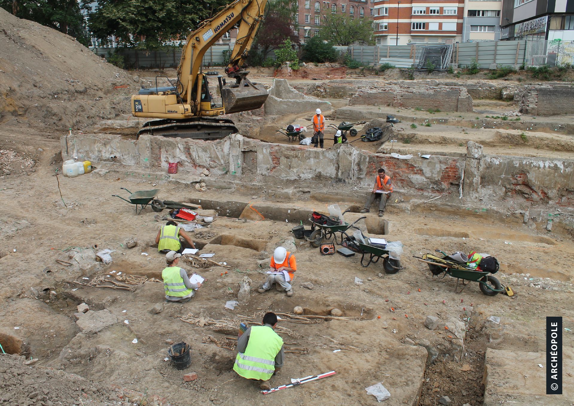 Dans le cadre de la construction d'appartements en plein centre-ville de Lille (59) et à l'issue d'un diagnostic dirigé par Virginie Decoupigny (Inrap), deux emprises du projet dit du « Clos Malpart » ont fait l'objet d'une prescription pour une fouille archéologique. L'opération menée par Archéopole s'est déroulée du 01 juin au 29 septembre 2017 sur une surface approximative de 2900 m². Le terrain naturel se compose de limons de plateau reposant sur des sables landéniens et/ou de la craie blanche apparaissant à des altitudes variables et de manière irrégulière sur le site. Le pendage du terrain est marqué du nord-ouest vers le sud-est, soit vers l'un des canaux de la Deûle, la Riviérette. À proximité immédiate, différentes opérations archéologiques ont permis de mettre en valeur et confirmer le potentiel archéologique du quartier à l'image de la fouille de l'Hospice Gantois réalisée en 2002 par Archéopole. La parcelle cadastrale (TS001) était jusqu'alors occupée en grande partie par les bâtiments de l'ancienne maternité Salengro construite dans les années 1960 dans le cadre d'un programme plus vaste de rénovation urbaine du quartier Saint-Sauveur. Elle sera transformée en auberge de jeunesse en 1996 jusqu'à son abandon et sa démolition en 2016. Il s'agit d'une construction en béton armé dont les fondations sont constituées d'un réseau de longrines formant un quadrillage et renforcé par des plots plus imposants aux angles. L'ampleur de cette construction a profondément marqué le site et donc la conservation des vestiges sous-jacents.