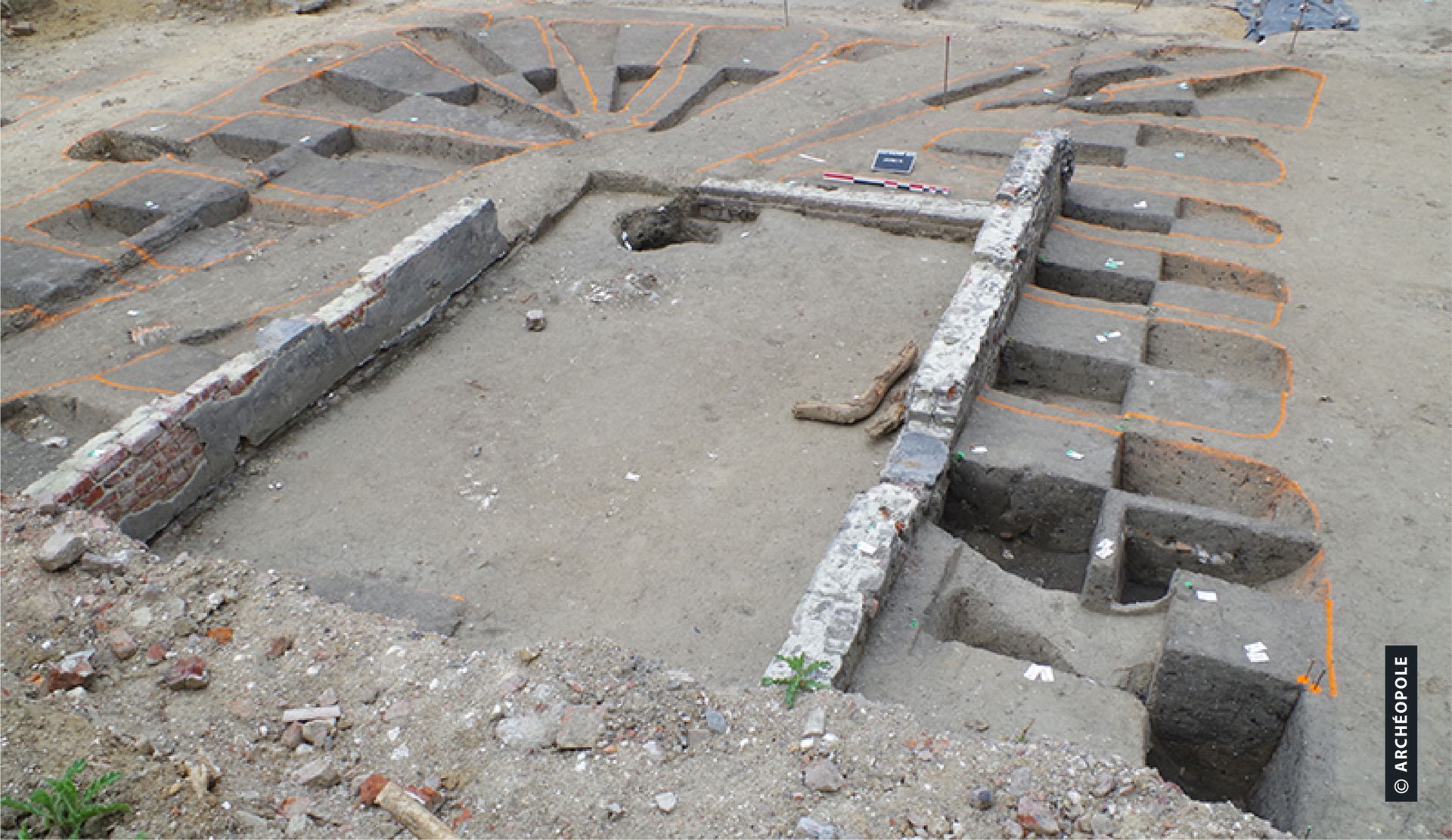 Aménagements des fosses de plantations des jardins de l'hospice Gantois. © Photographie D. Cense Archéopole 2017