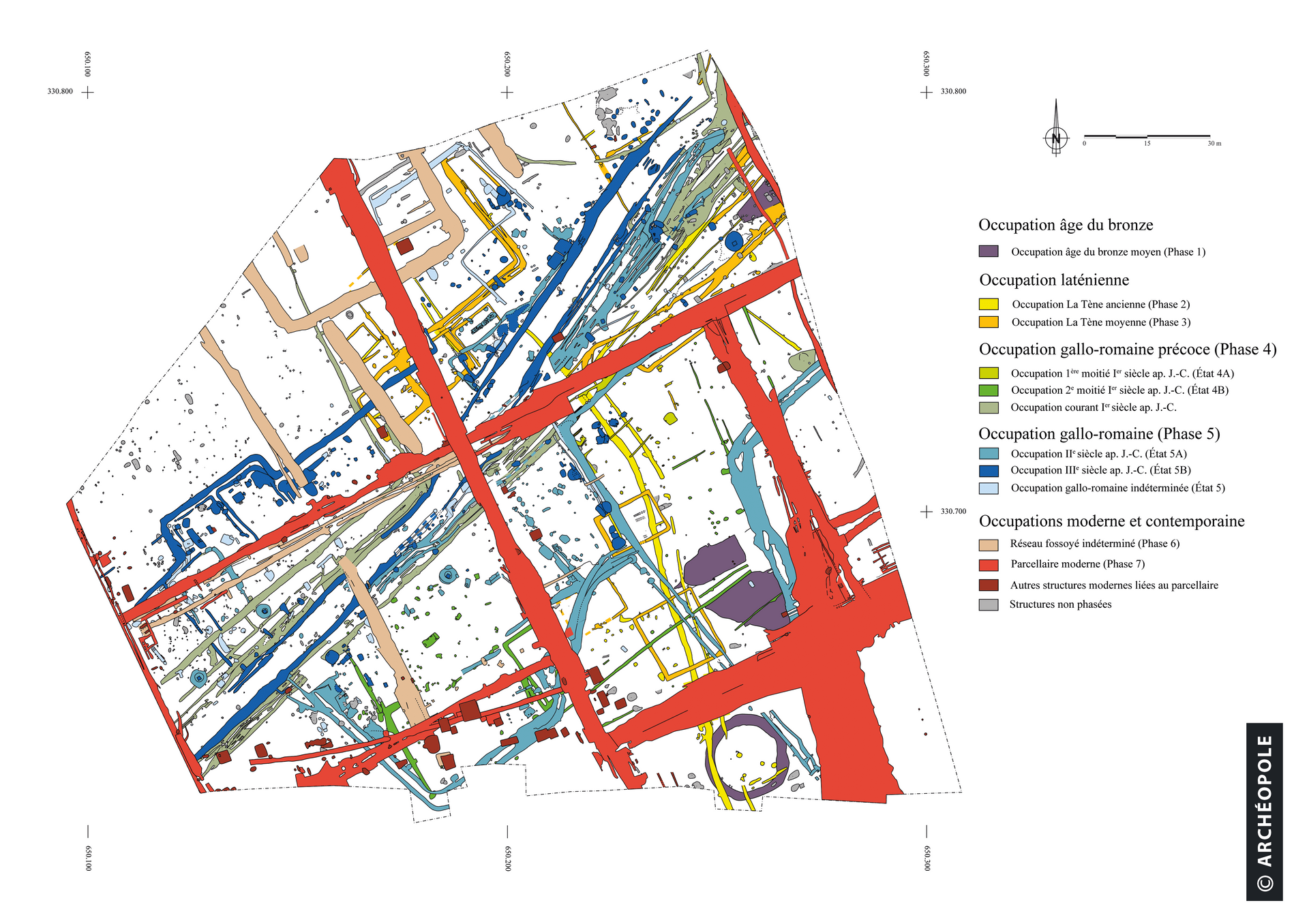 Plan de répartition par phase. © DAO J. Georges, Archéopole 2018