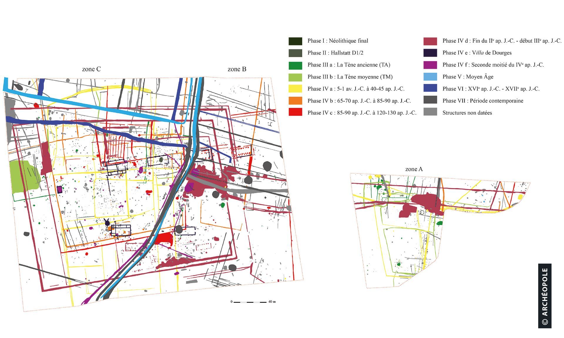 Plan de répartition par phase. © DAO J. Georges, Archéopole 2018