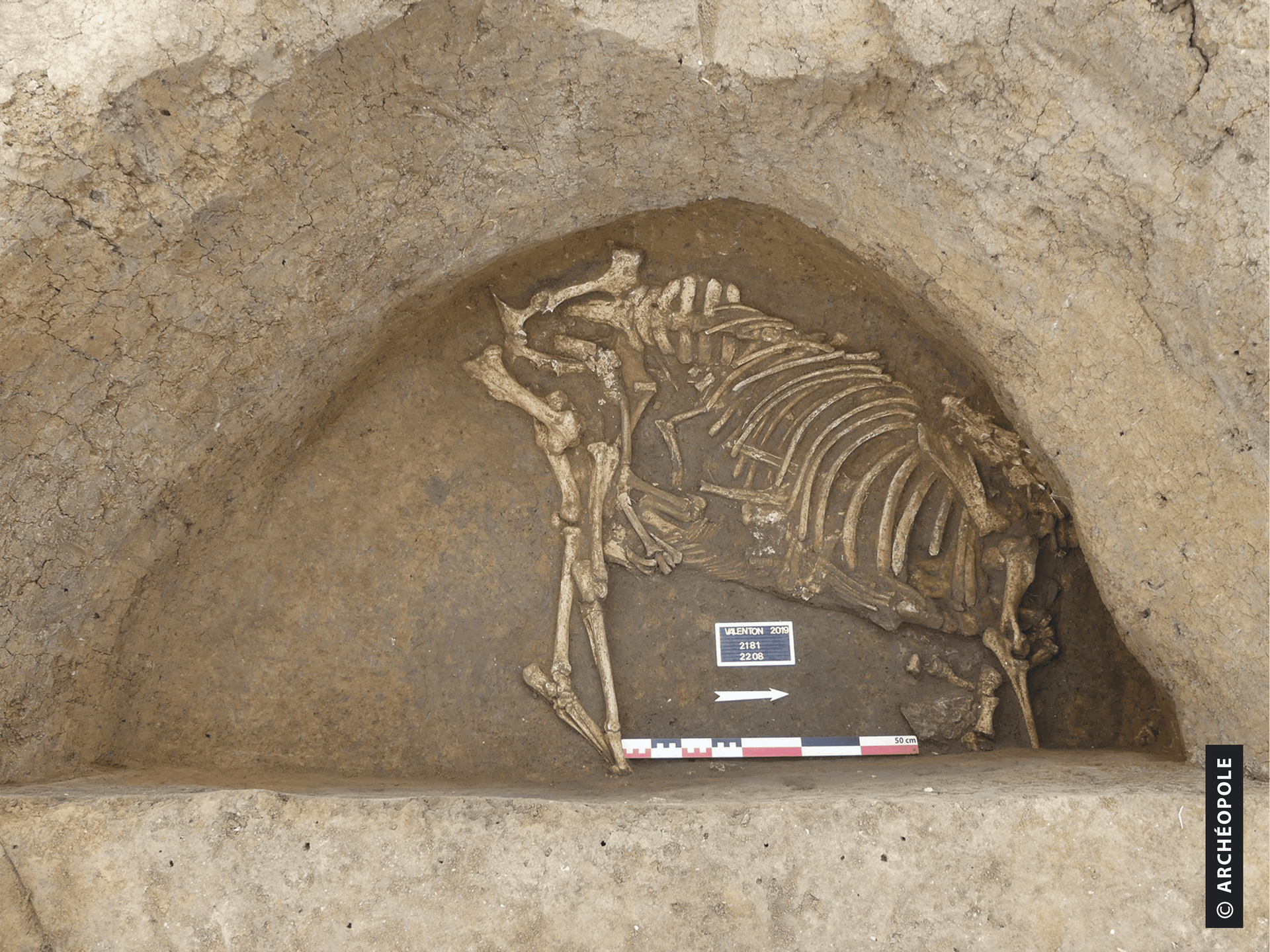 Silo du Bas-Empire ayant livré plusieurs dépouilles animales dont celles de deux équidés. © Archéopole