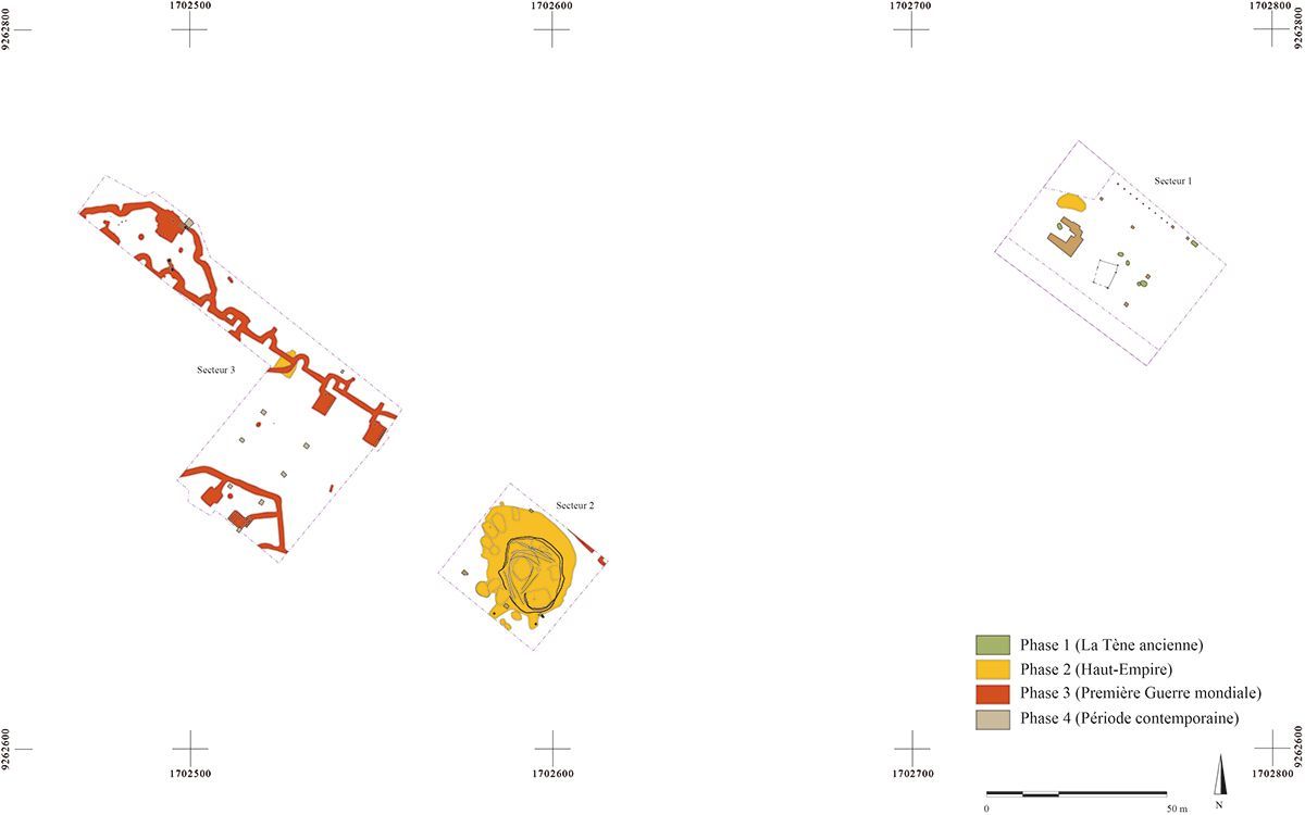 Plan de répartition par phase. © DAO J. Georges, Archéopole 2018